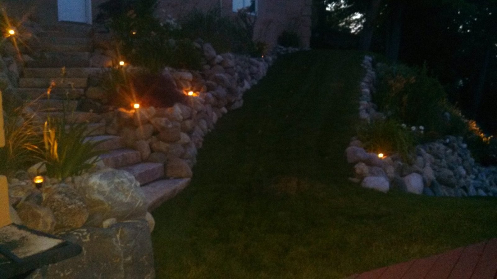 Bring beauty, safety and security to your home and landscape investment with a professionally designed and installed outdoor lighting system. Lighting can be installed in a wide variety of locations including decks, walkways, walls and staircases to provide safety, function and convenience. Our designers and installers will work with you to create comforting lighting ambience while also addressing home security concerns with a design that will accentuate your home’s landscaping and illuminate problem areas.