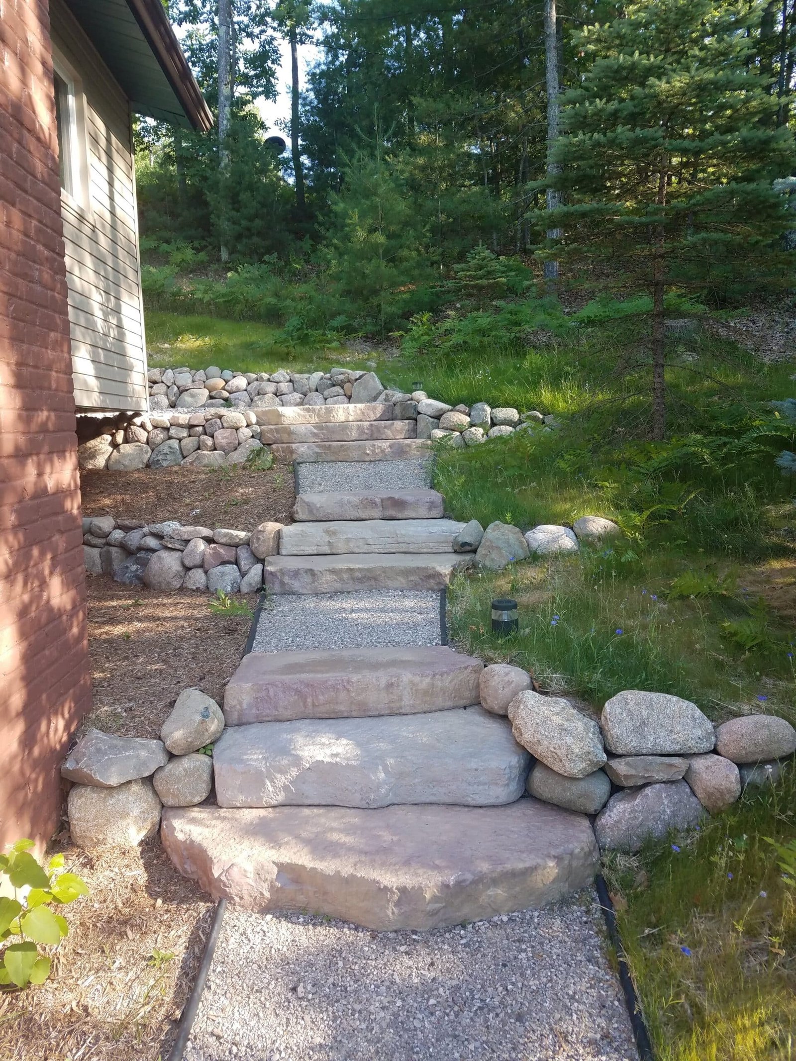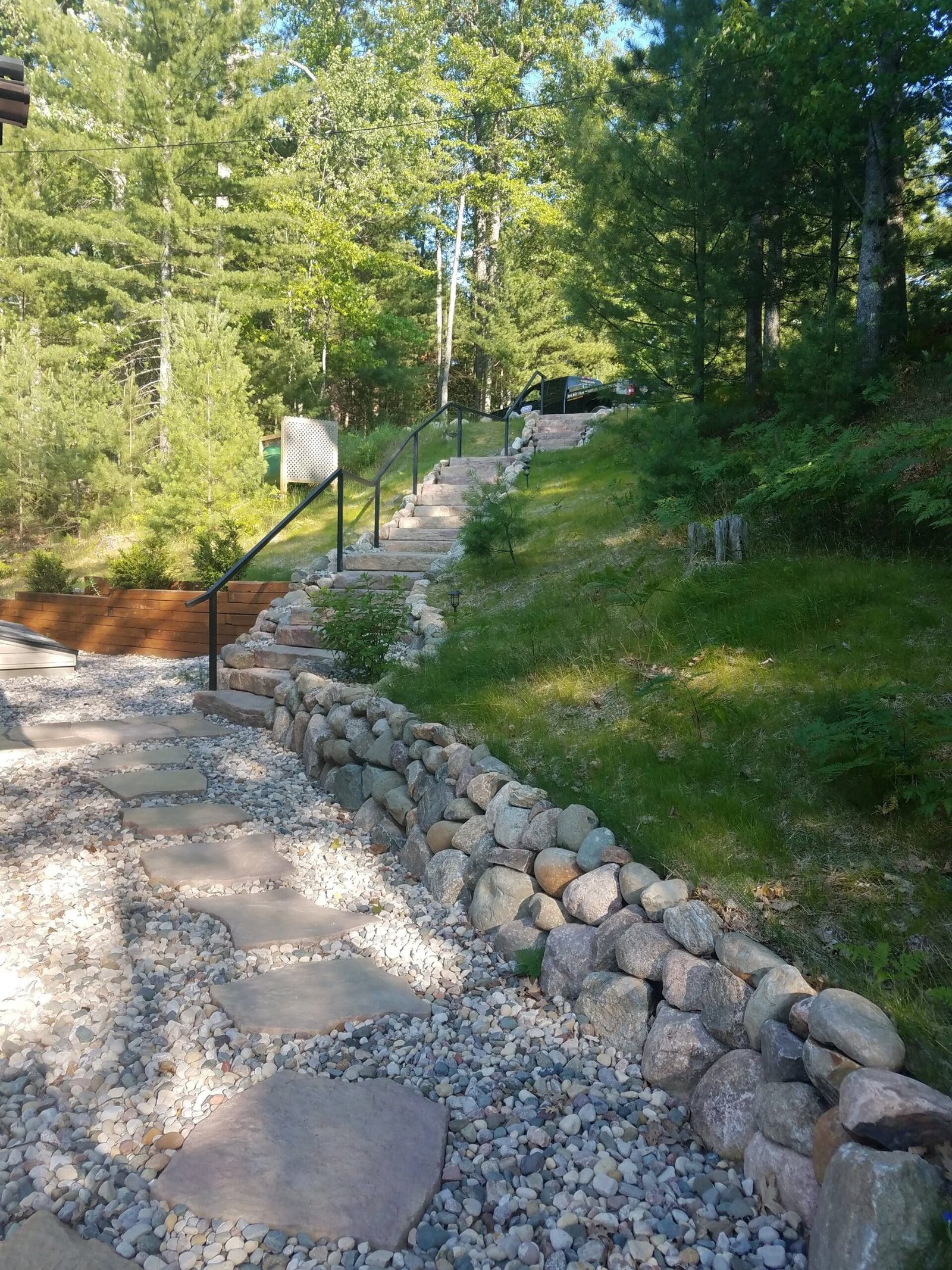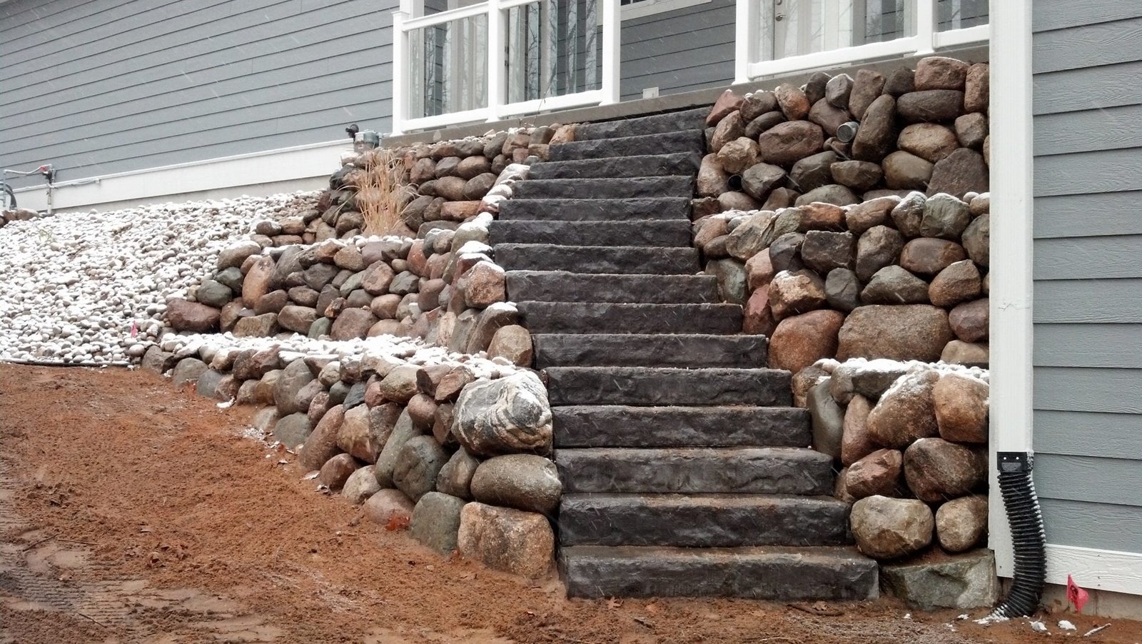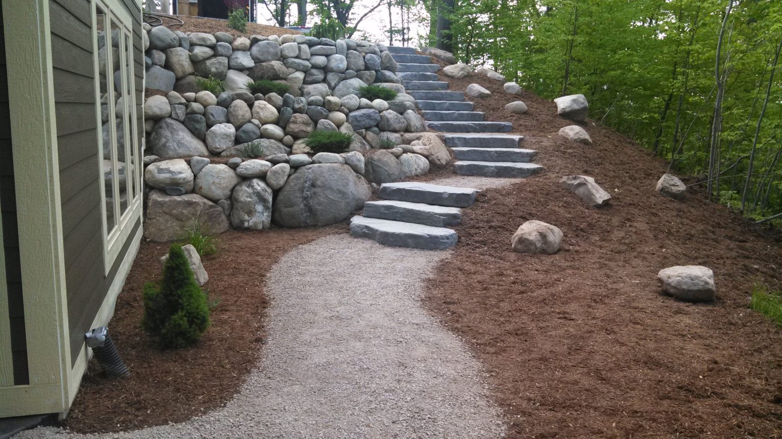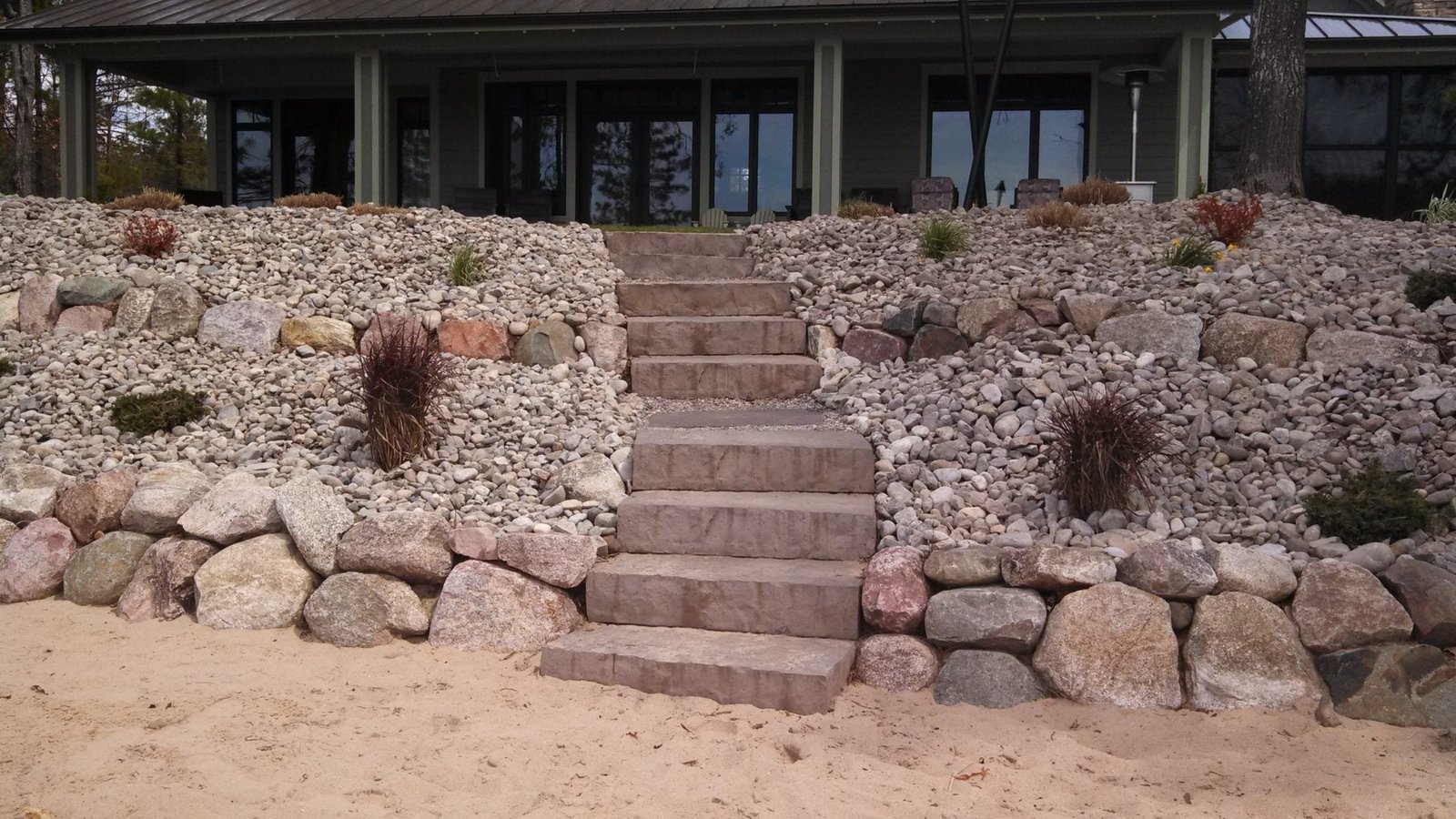Make any area of your property accessible with hardscape steps. Steps or stairs can be installed using a wide array of materials, and can be installed almost anywhere: in retaining walls or seawalls, door entrances or planted in the side of a hill. Check out the links below for examples!