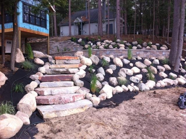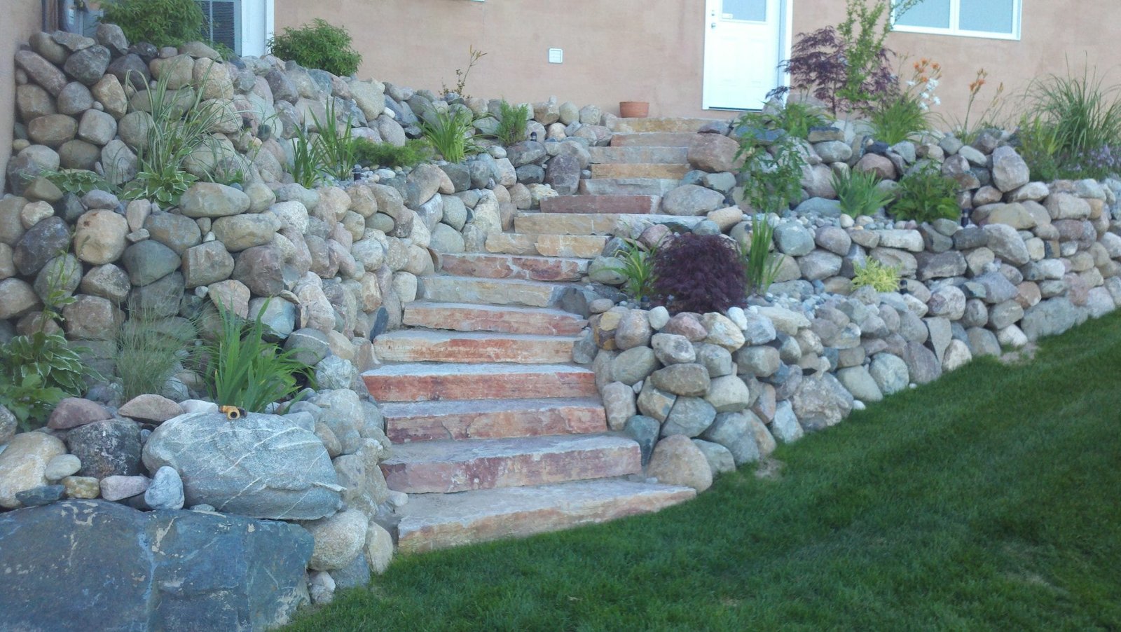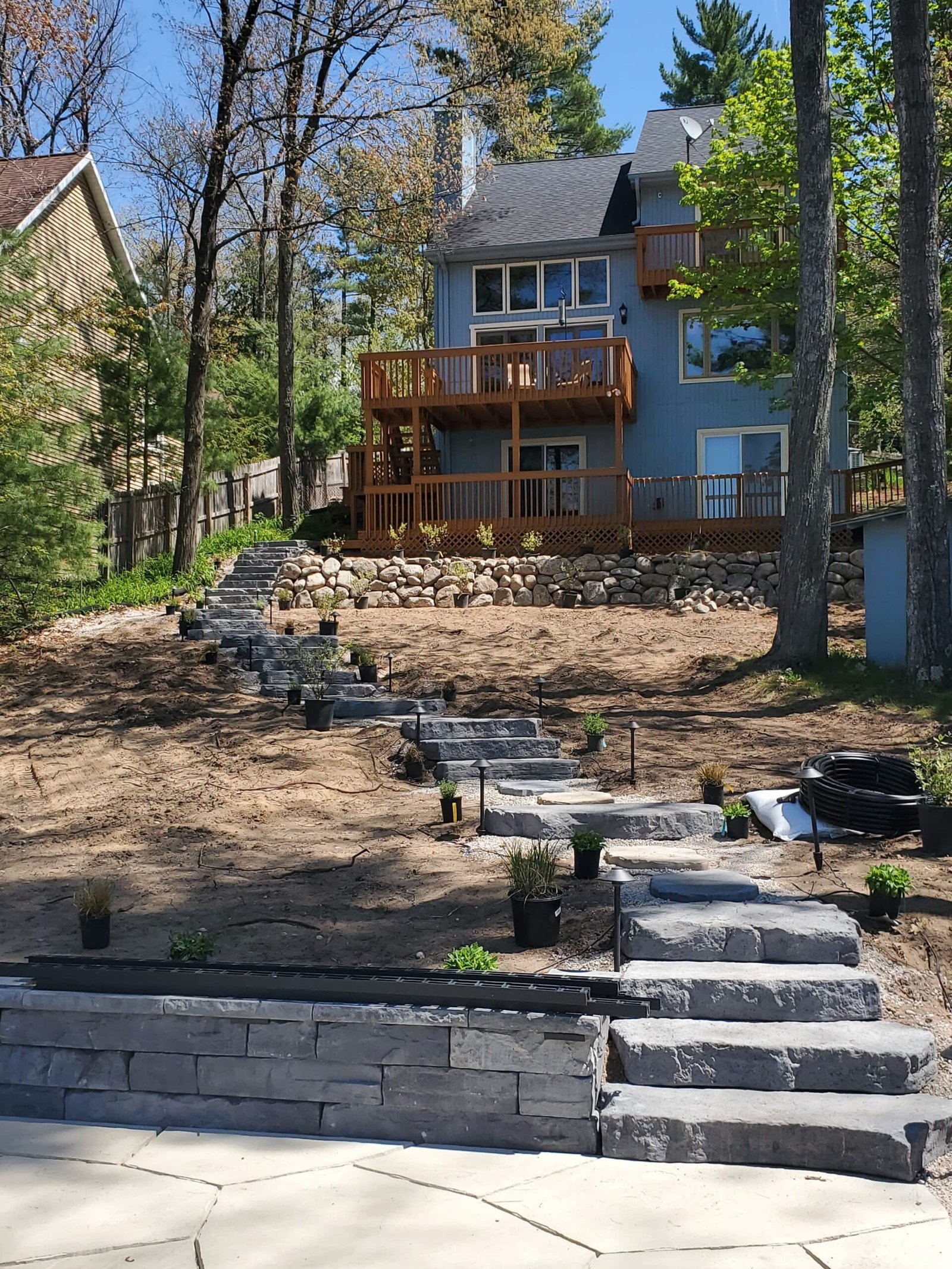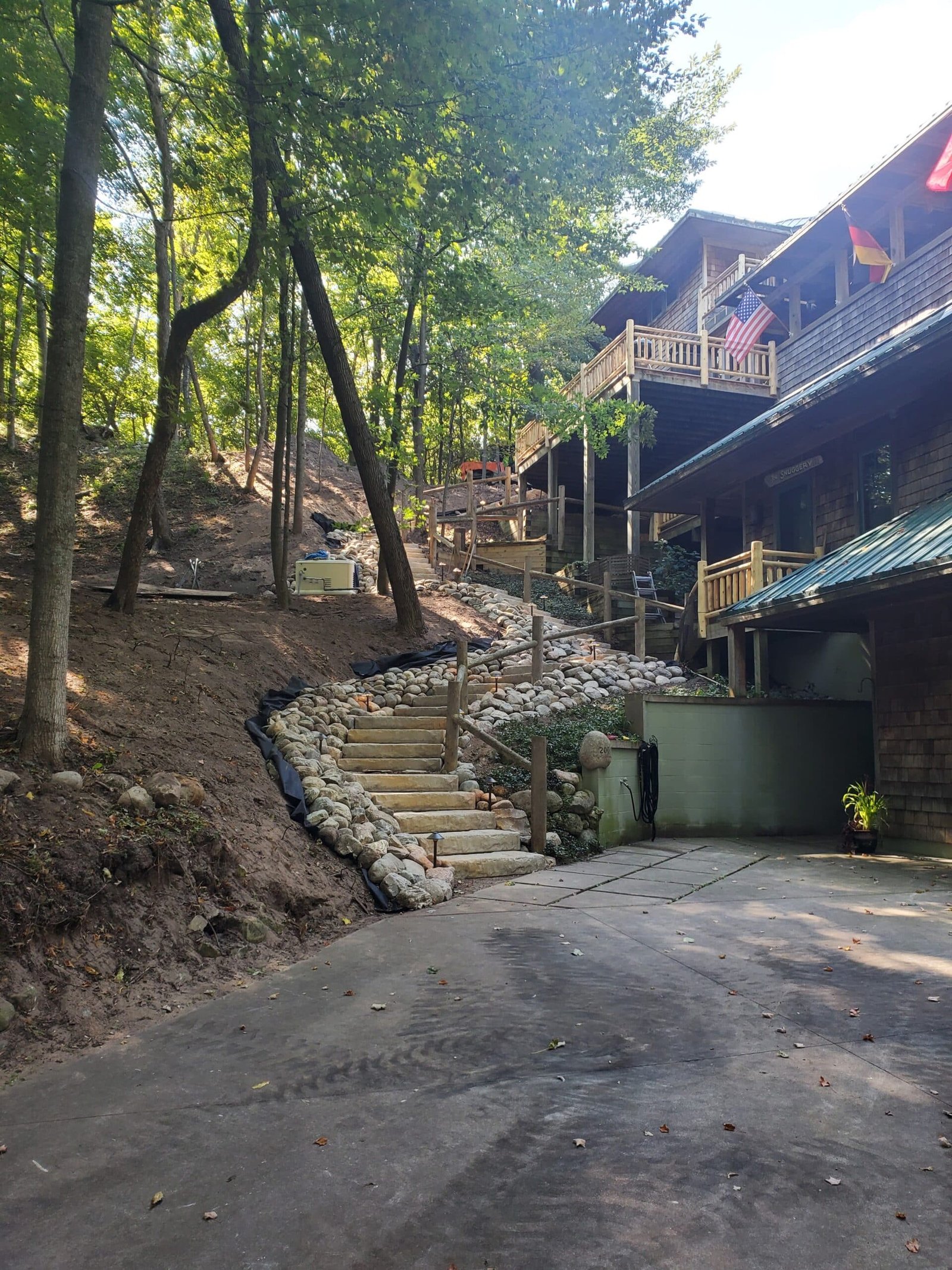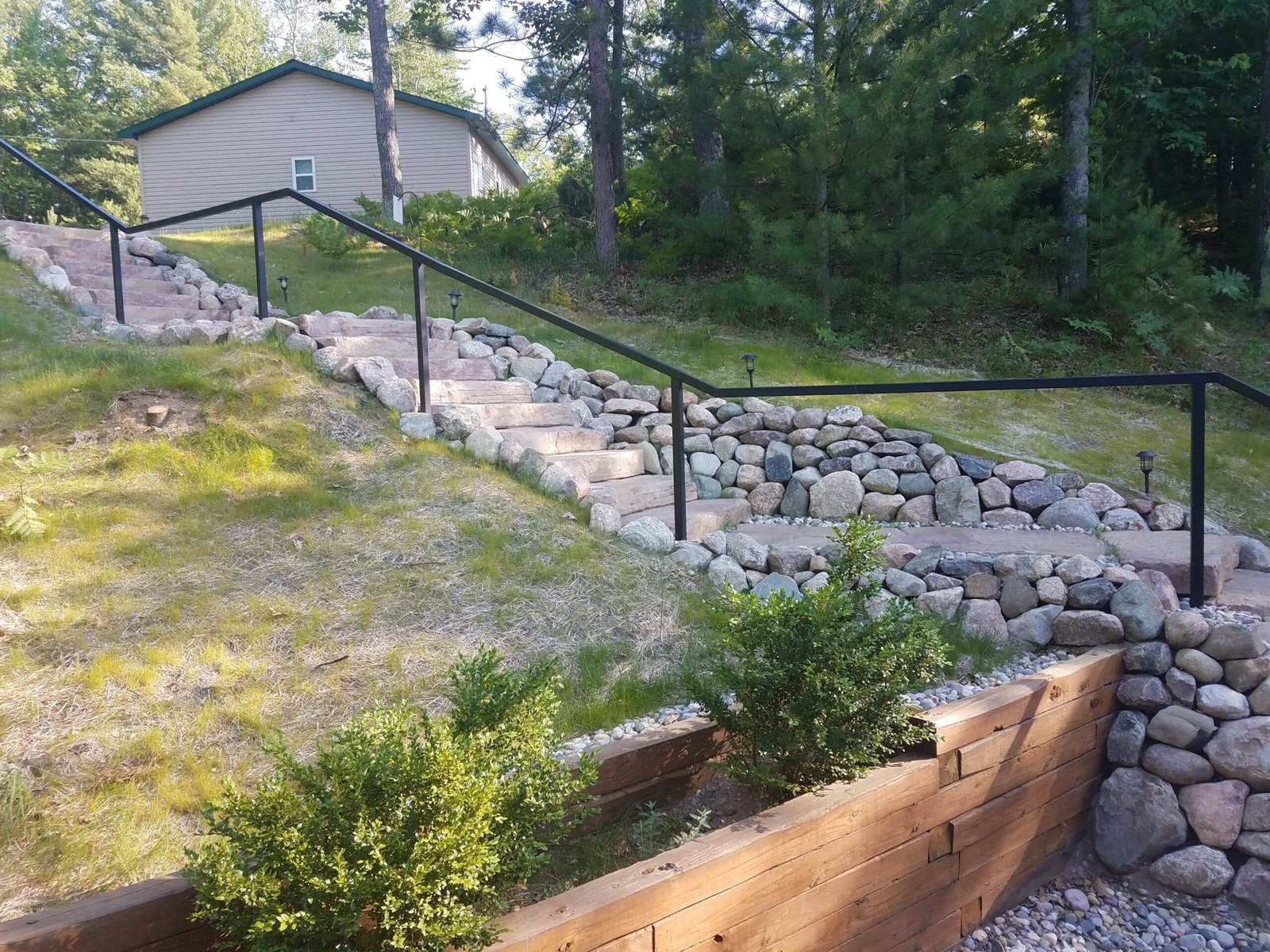 Make any area of your property accessible with hardscape steps. Steps or stairs can be installed using a wide array of materials, and can be installed almost anywhere: in retaining walls or seawalls, door entrances or planted in the side of a hill. Check out the links below for examples!