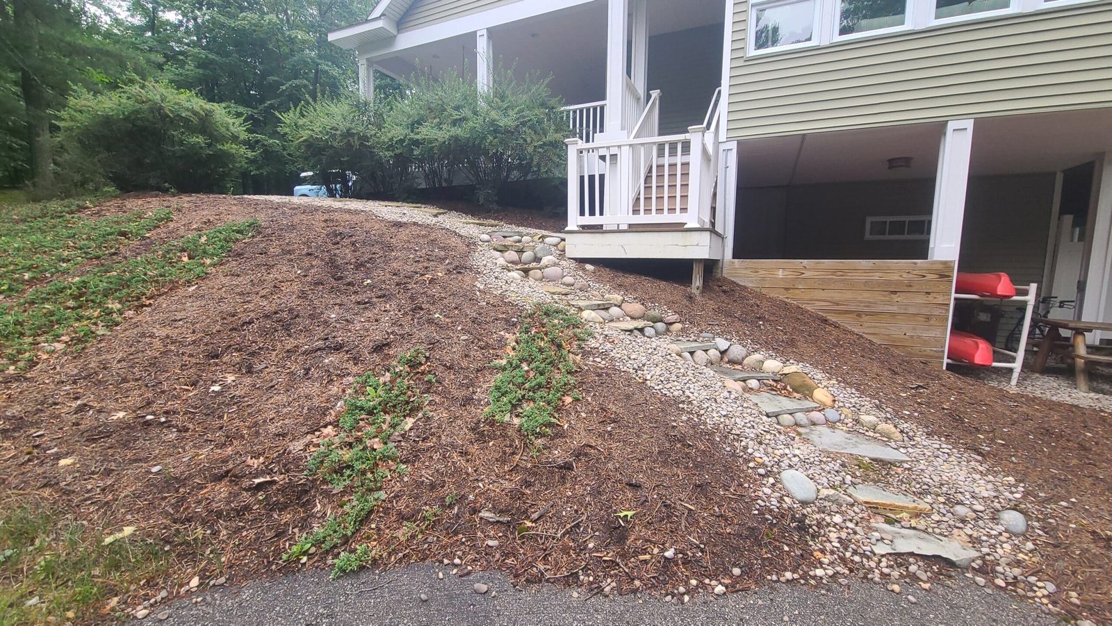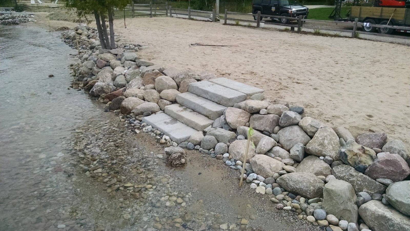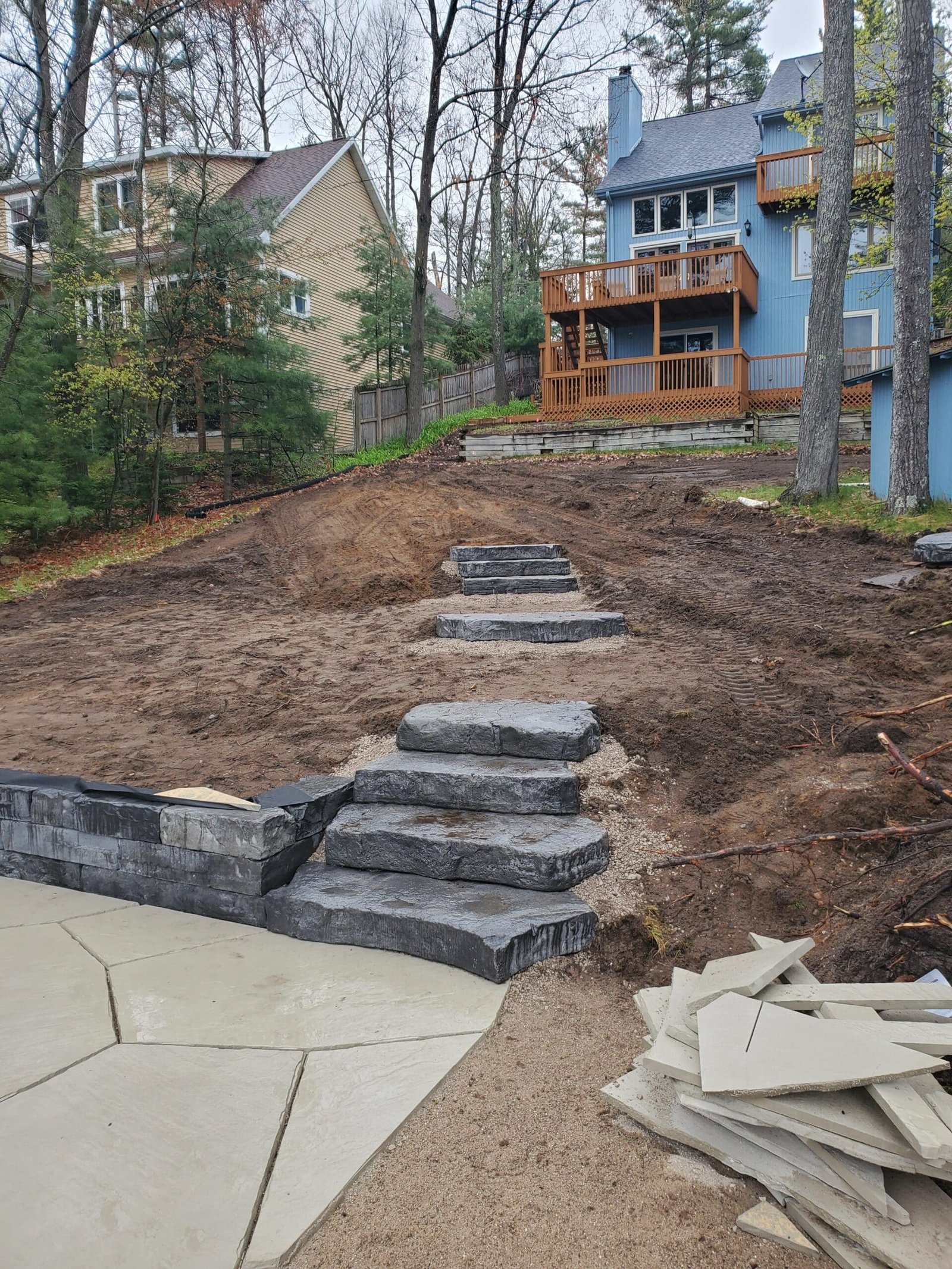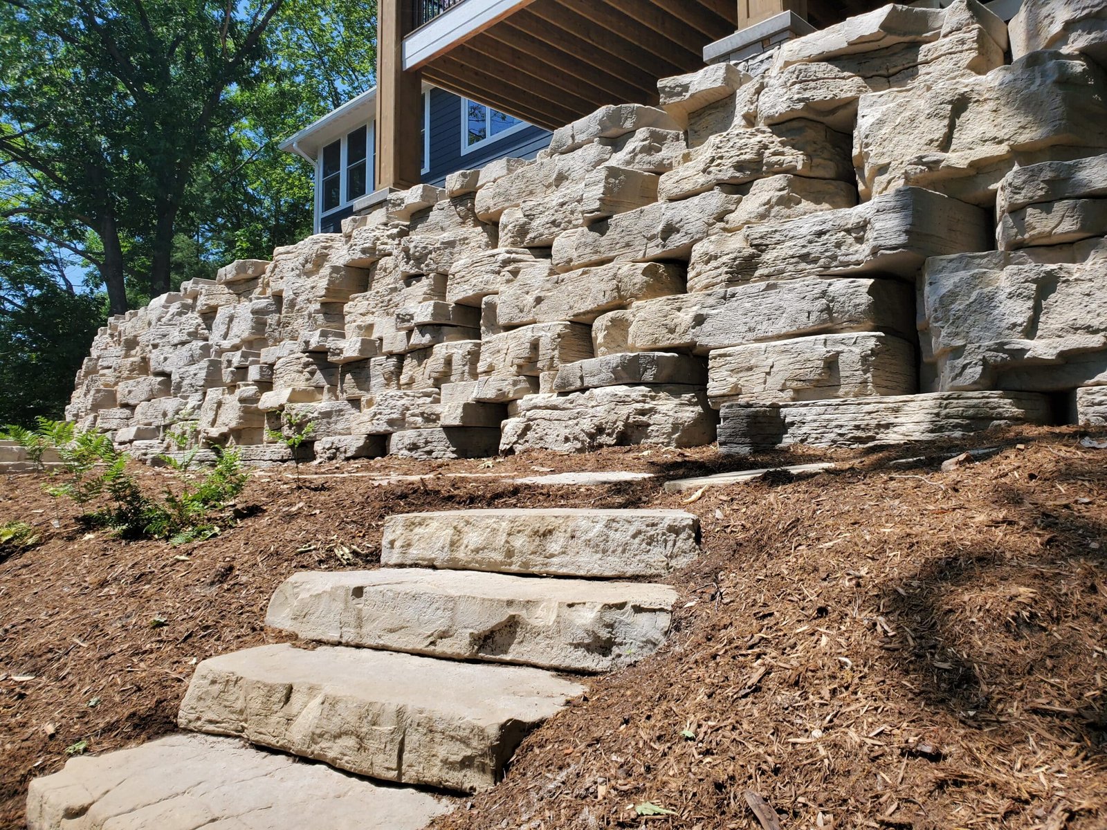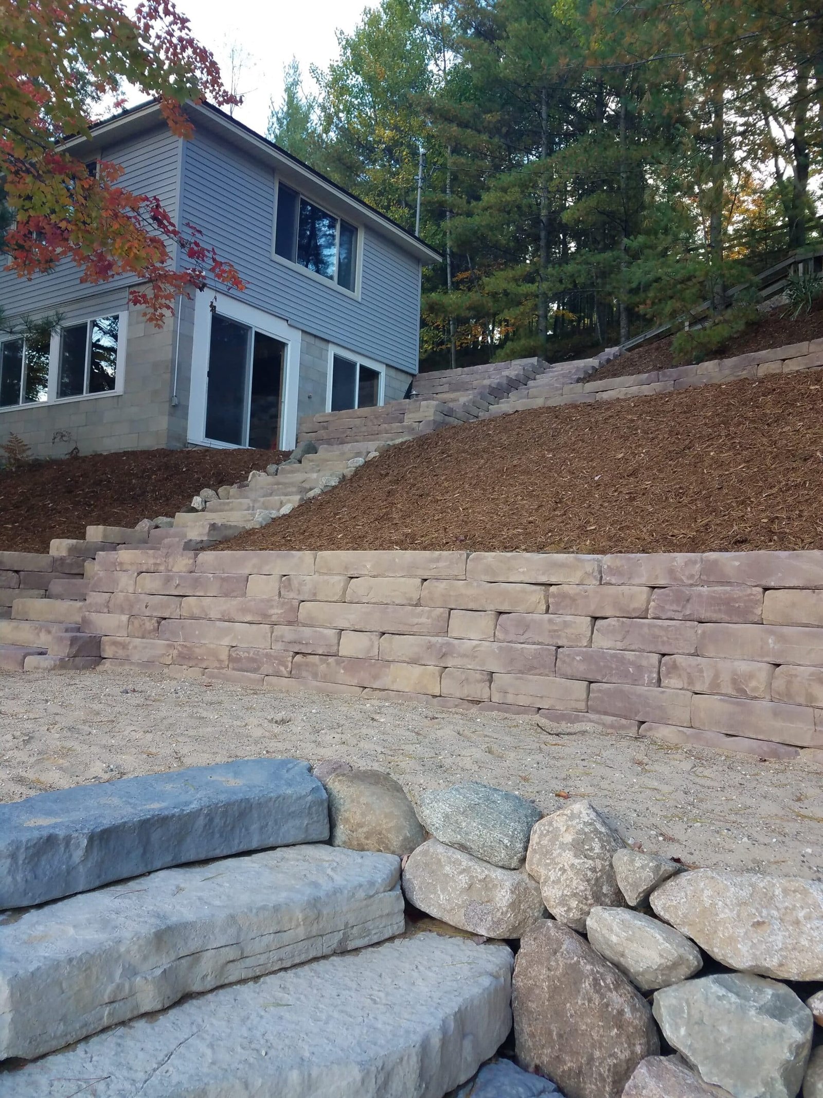 Make any area of your property accessible with hardscape steps. Steps or stairs can be installed using a wide array of materials, and can be installed almost anywhere: in retaining walls or seawalls, door entrances or planted in the side of a hill. Check out the links below for examples!