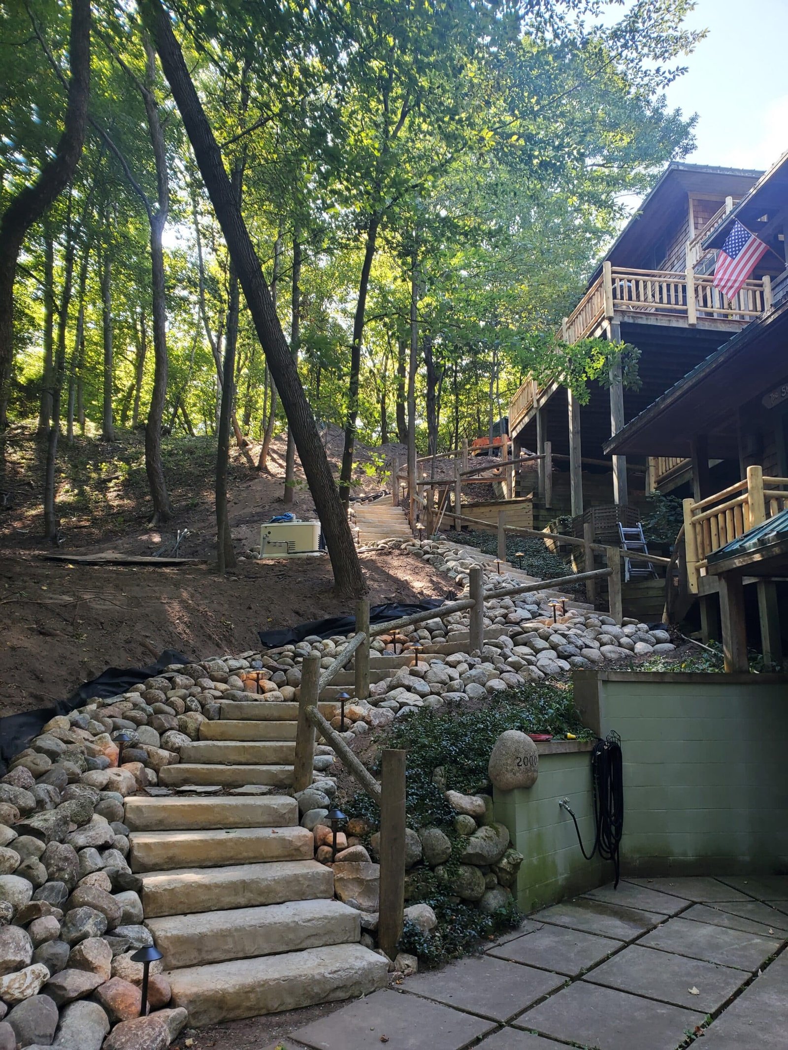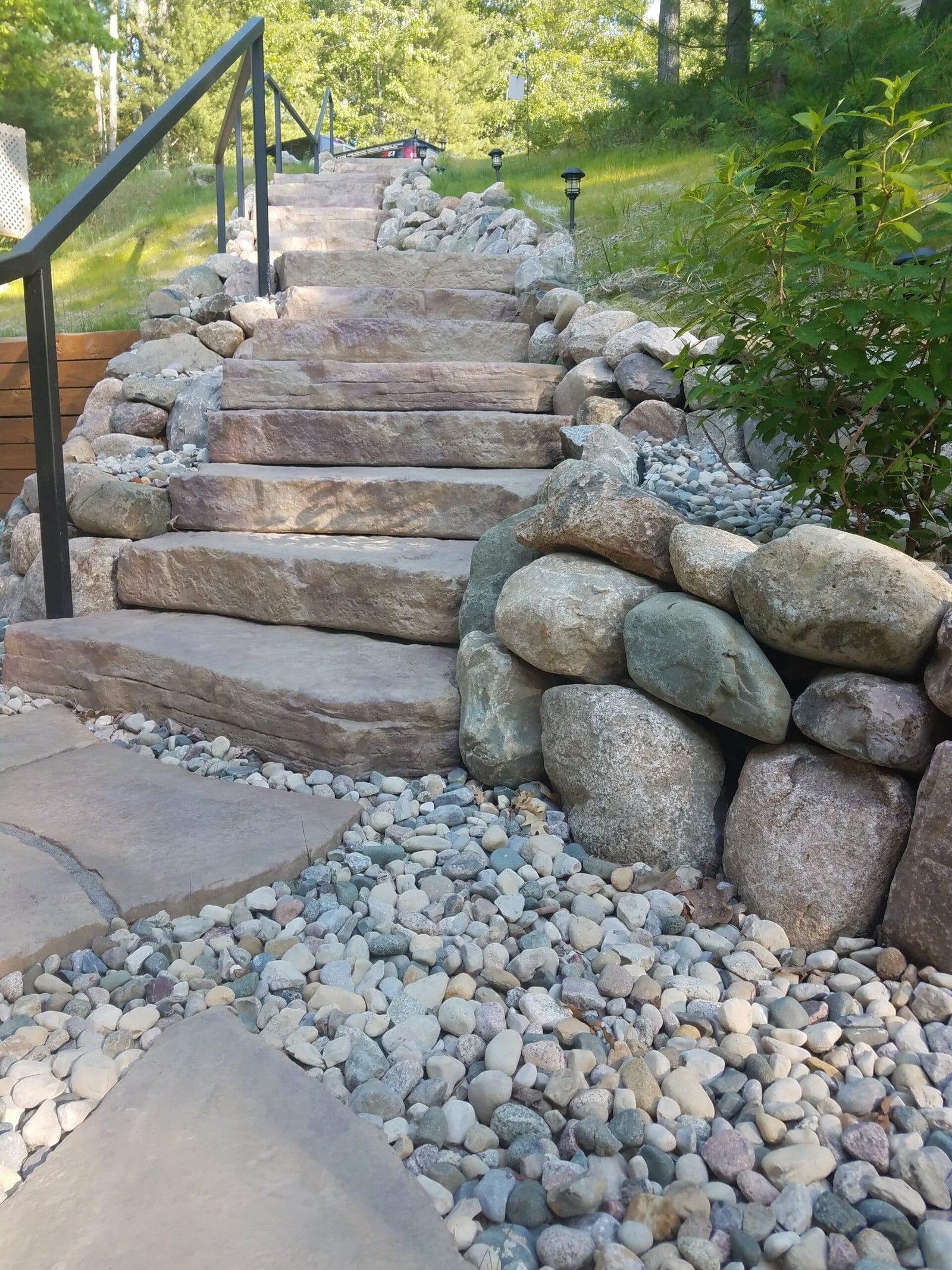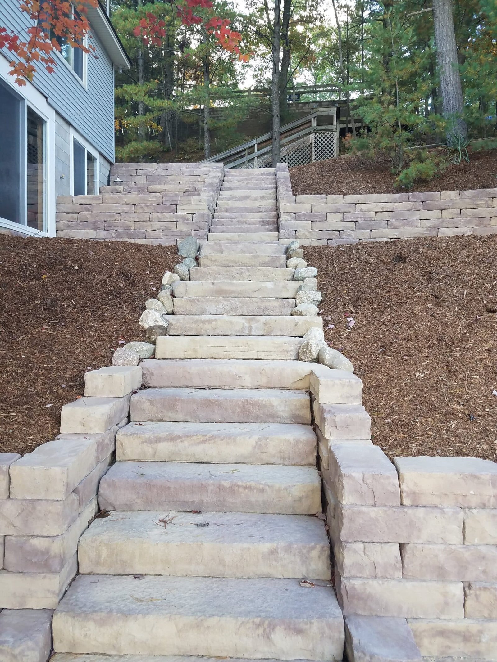 Natural Stone is unrivaled in beauty, the natural color variances and texture provide spectacular step materials. Our natural stairs are pre-cut to achieve consistent step height and provide an easily navigable staircase, while still looking at home in a rustic landscape.