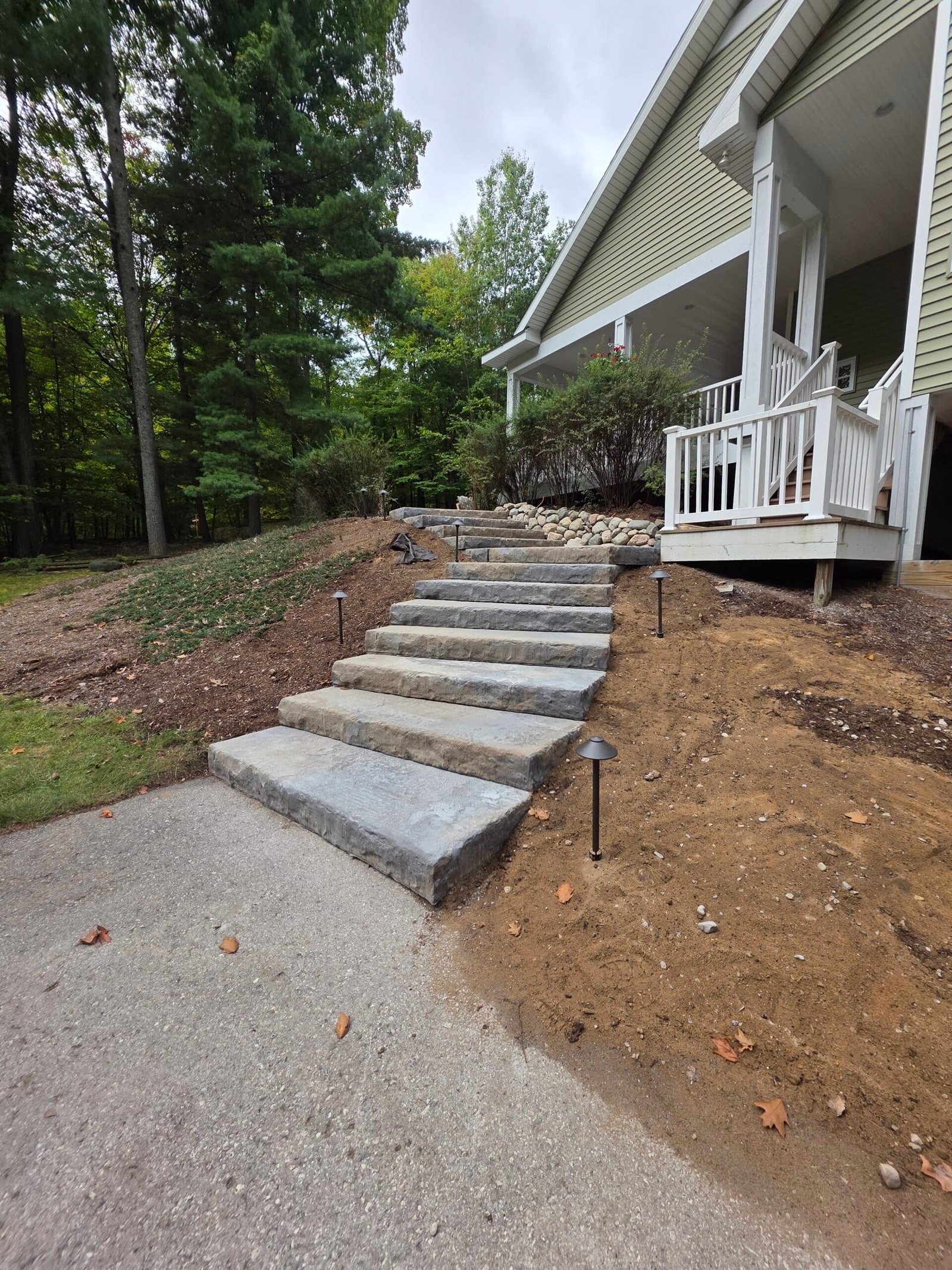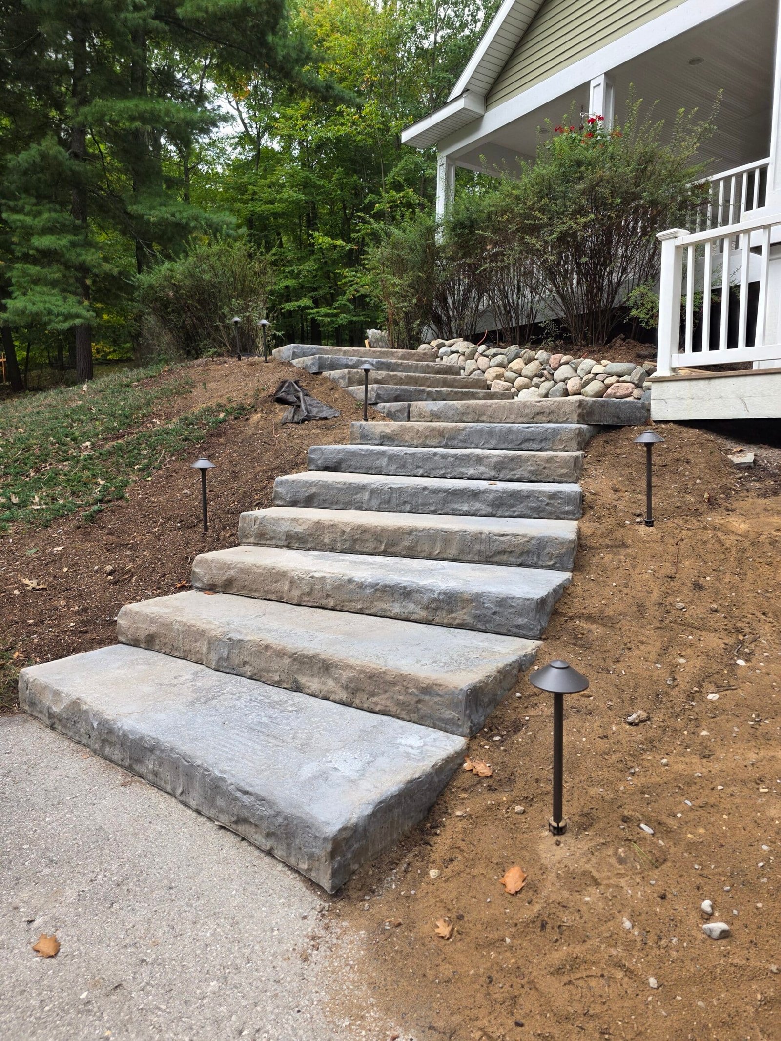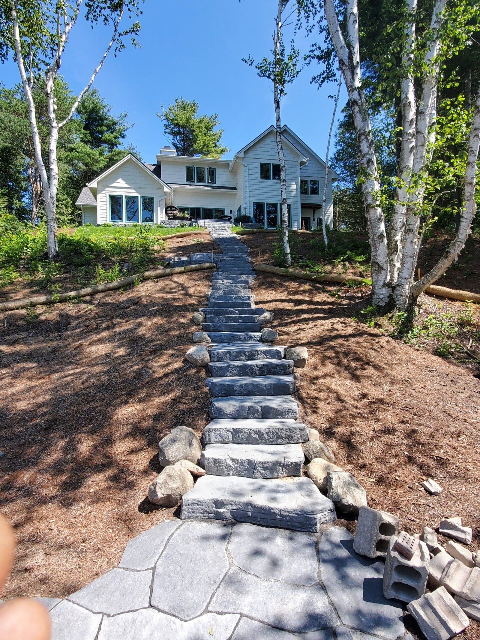 Natural Stone is unrivaled in beauty, the natural color variances and texture provide spectacular step materials. Our natural stairs are pre-cut to achieve consistent step height and provide an easily navigable staircase, while still looking at home in a rustic landscape.